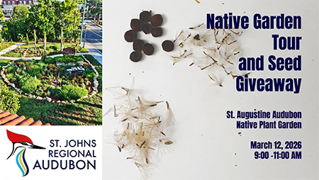 Join us at the St. Augustine Audubon Native Plant Garden for a Spring Tour and native plant seed giveaway on Thursday, March 12.
